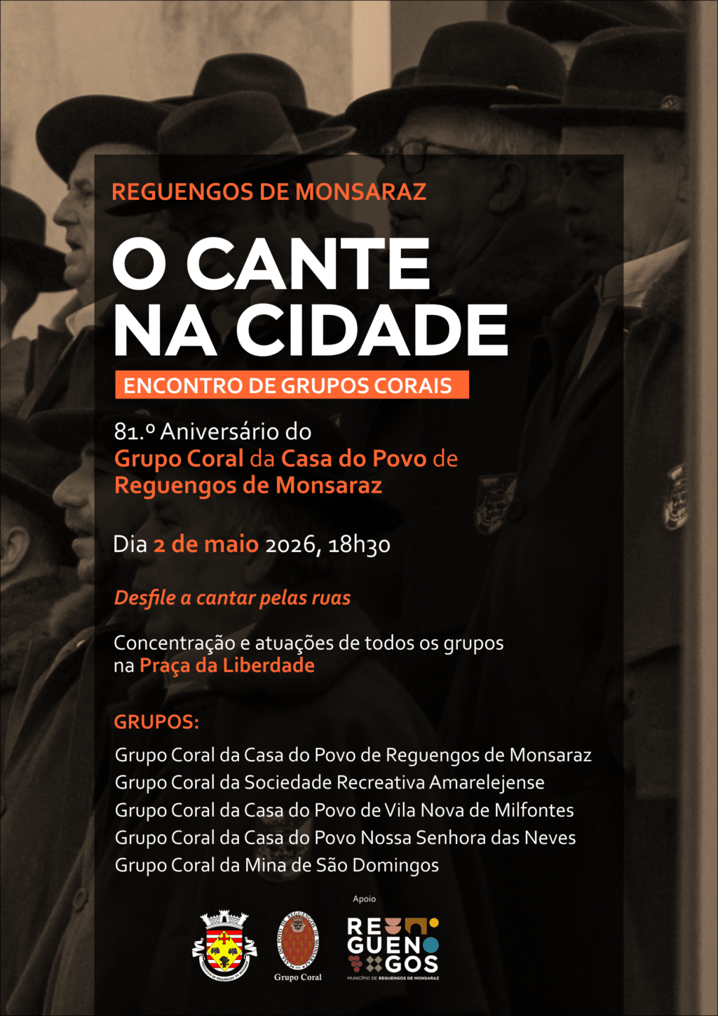 Eventos Últimos eventos O CANTE NA CIDADE – ENCONTRO DE GRUPOS CORAIS Passeios Livres a Fátima – Transporte gratuito Transporte para a Corrida Sempre Mulher 2026 Carnaval 2026 Concertos de Natal Agenda de dezembro de 2025 Página1 Página2 Página3 … Página15 Actualidade O CANTE NA CIDADE – ENCONTRO DE GRUPOS CORAIS Saber mais » Passeios Livres a Fátima – Transporte gratuito Saber mais » Transporte para a Corrida Sempre Mulher 2026 Saber mais » Carnaval 2026 Saber mais » Concertos de Natal Saber mais »